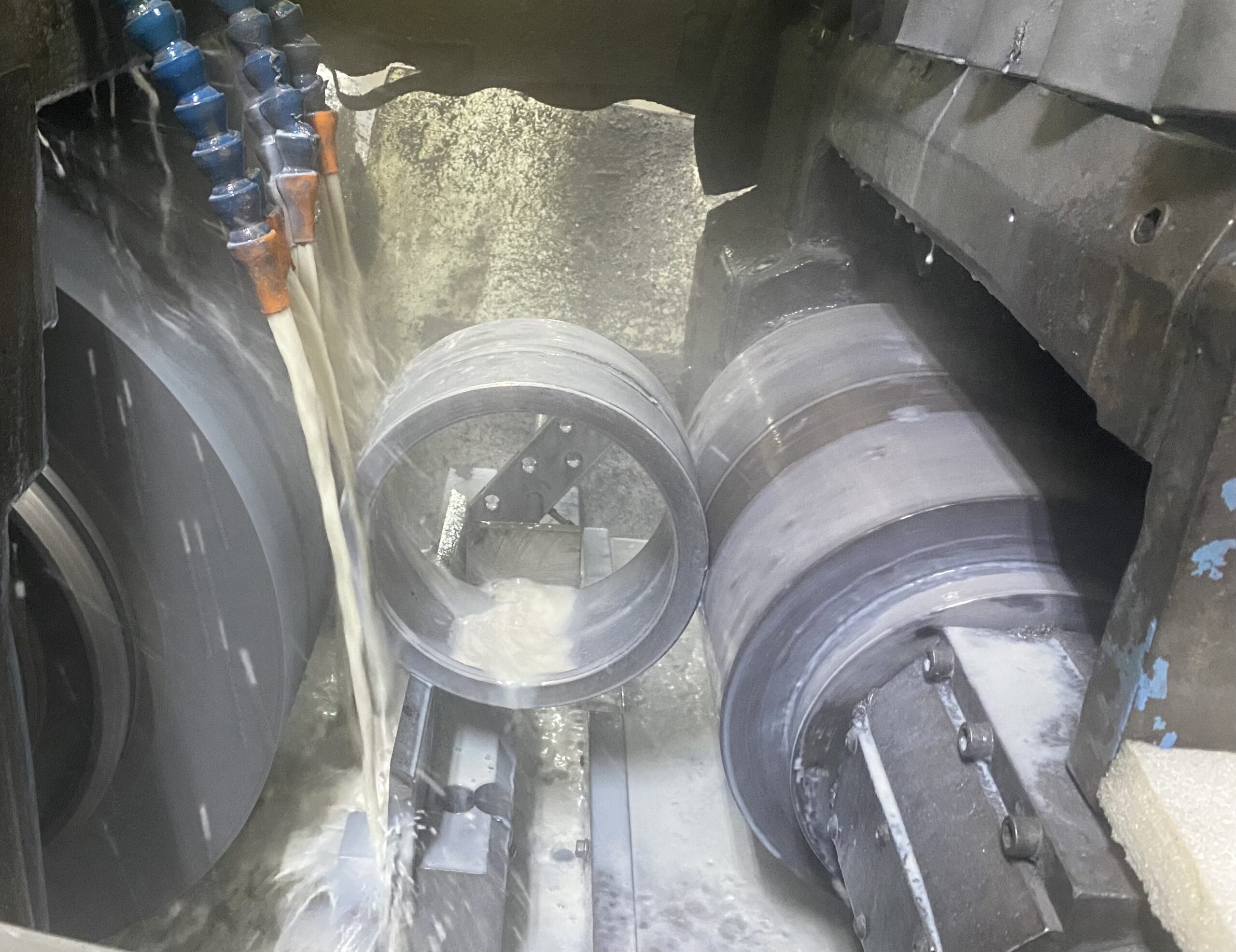 This image demonstrates SC Industries’ capabilities in complex metal machining. Here you can see a metal cylinder undergoing a double grinding process. We utilize the latest technology and expert machinists to create high-quality metal parts with precision and efficiency. Whether you need a standard or custom part, SC Industries has the expertise to deliver. We are a trusted metal fabrication provider in Houston, TX, offering comprehensive services for industries like aerospace, oil & gas, and more. Contact us today to learn more about our comprehensive capabilities.